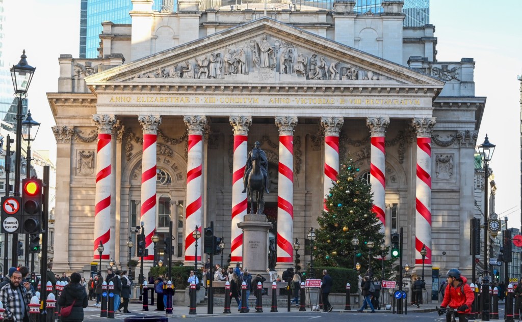 More eclectic scenes of the capital as we approach Christmas. One welcome aspect of being British in recent years is that we’ve loosened up a bit as a nation; the idea of turning the pillars of the Royal Exchange into seasonal candy stripes would have been a definite no-no not that long ago.