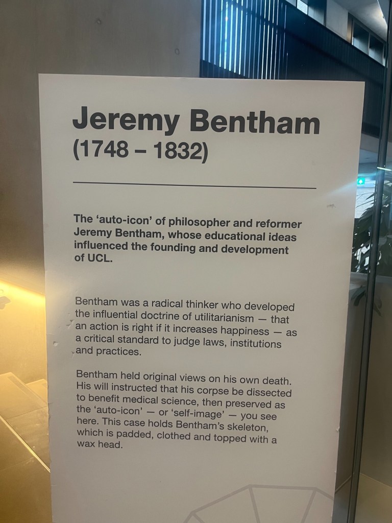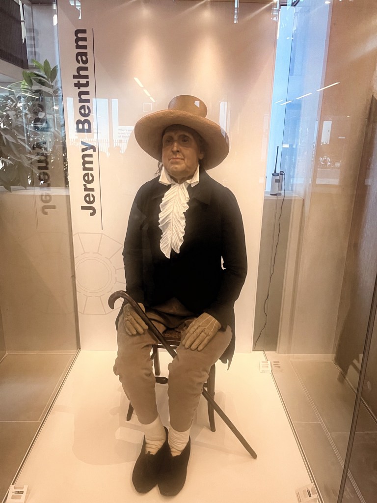 – but my mission today was not architectural. It was rather more Bizarre. I’m looking for the “body” of Jeremy Bentham and after wandering around, getting lost, and stumbling into a campus kitchen I eventually found it.