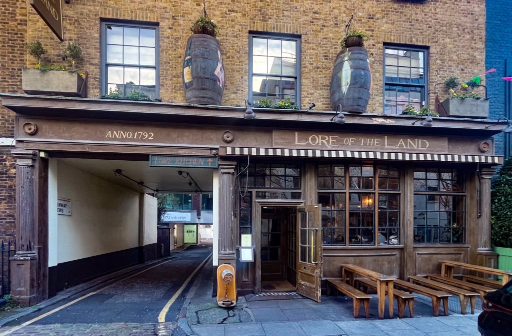 The Lore of the Land is owned by Guy Ritchie (he of movie fame such as Lock Stock and Two Smoking Barrels, The Gentlemen and Sherlock Holmes). In the bar is the ship’s bell from The Mayflower which a certain pub in Rotherhithe of that name would love to get its hands on …