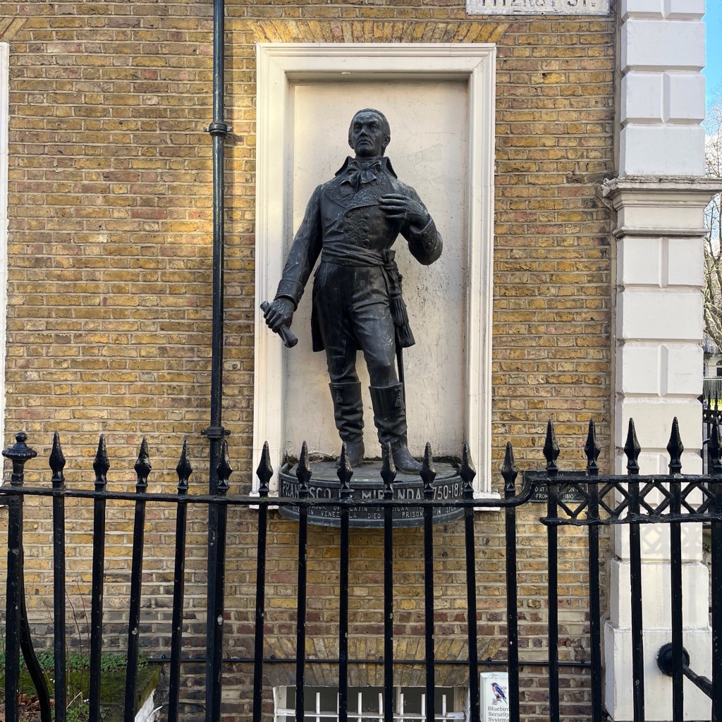 As is inevitably the case in these areas there are a number of blue plaques relating to people you have never heard of. My favourite example of this is a man who doesn’t just merit a blue plaque but gets a whole statue to himself on the corner of Fitzroy Street and Fitzroy Square. General Francesco de Miranda lived in this area between 1802 and 1810. If you look him up on Wikipedia you’ll find that he was a colourful but ultimately unsuccessful character who would probably have pride of place place in a book about failed revolutionaries.