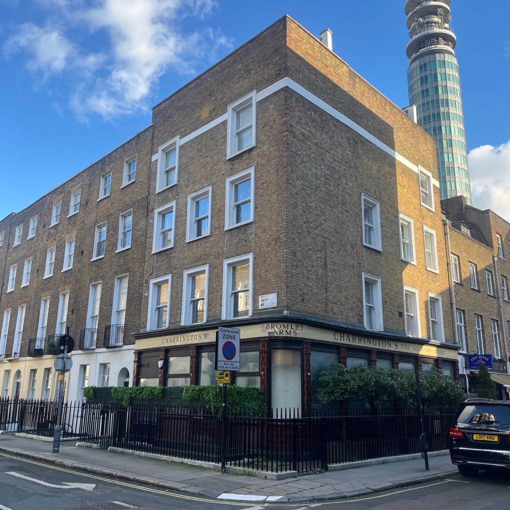 It was sad to see a boarded up pub on the corner of Grafton Way. I love the old tile work but the pub itself closed several years ago. There is an interesting article on it here.