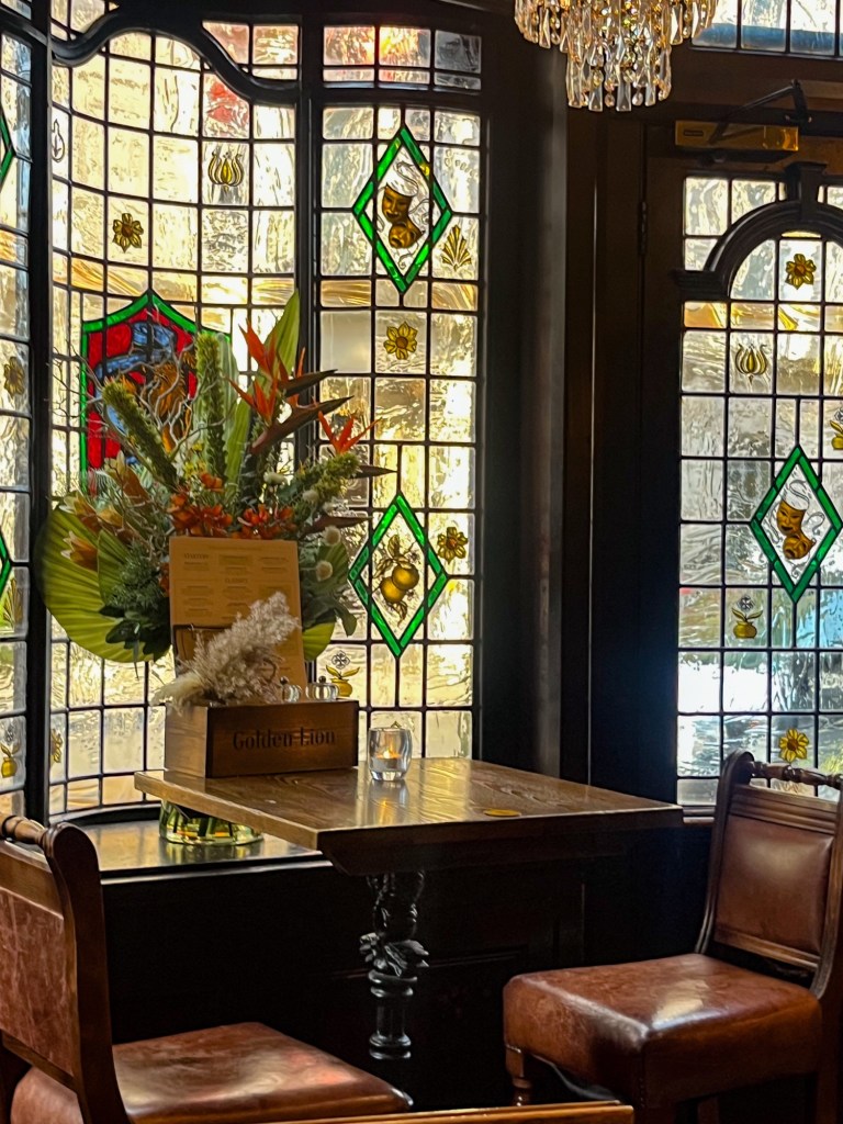 The pub we went to was The Golden Lion which has a classic interior and an upstairs theatre bar, the staircase to which has some lovely old photos of stars of screen and stage.